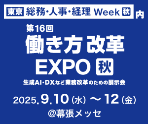 9月10日(水)~12日(金)の3日間、幕張メッセにて開催される、「第24回 [東京] 総務・人事・経理Week[秋]」内、「働き方改革EXPO」に出展します。